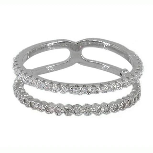 Sterling Silver With Rhodium, Double Bar Ring With Cubic Zirconia, 5.5mm Width