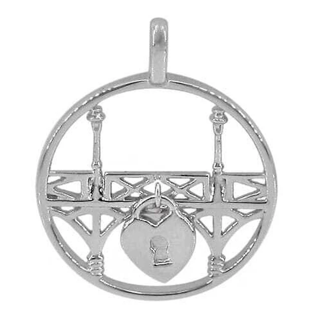 Sterling Silver With Rhodium Love Lock Bridge Pendant, 22mm Diameter(Outer Frame)