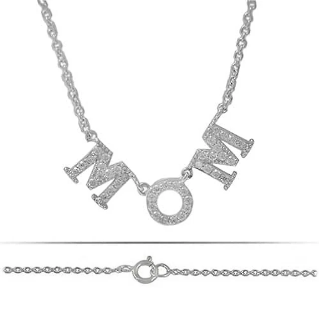 Sterling Silver With Rhodium, Mom (7X25mm) Charm Necklace