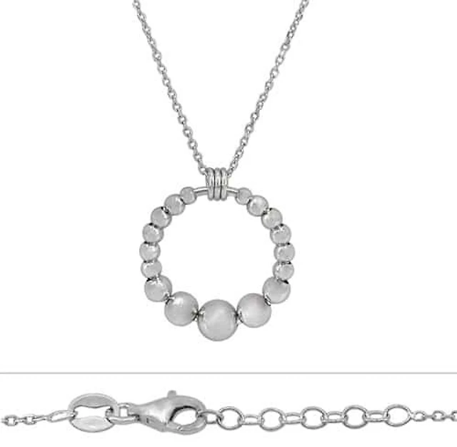 Sterling Silver With Rhodium Plated Beaded Ball Charm Necklace, 6mm Diameter(Largest Ball)
