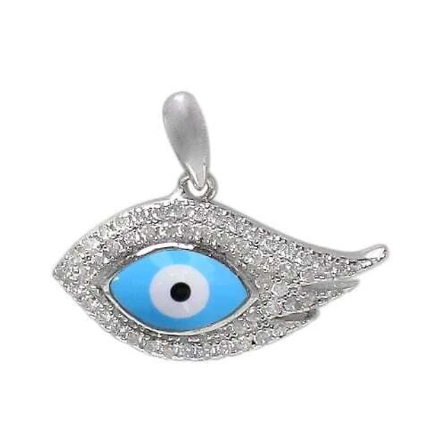 Sterling Silver With Rhodium Plated Evil Eye Pendant, 12X23mm