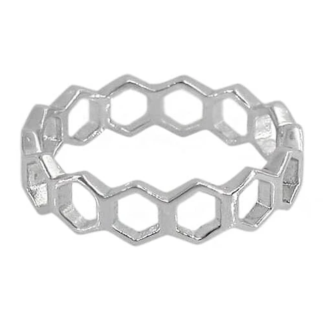Sterling Silver With Rhodium Plated Hexagon Shape Band, 5Mm Width.