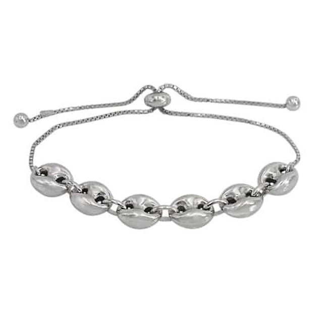 Sterling Silver With Rhodium Puffy Gucci Bead Bracelet With Silicone Stopper