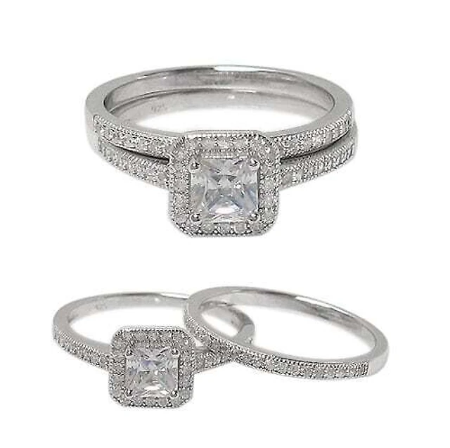 Sterling Silver With Rhodium, Ring Set With 5X5mm Cubic Zirconia, 2mm Band