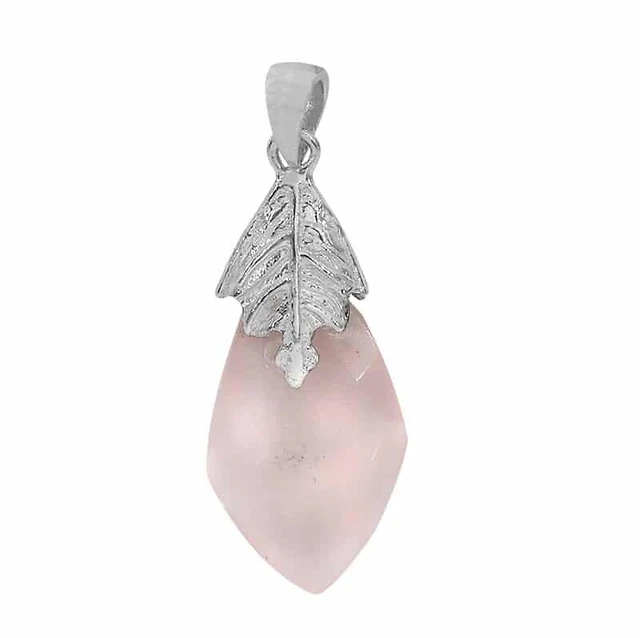 Sterling Silver With Rhodium, Rose Quartz Pendant, 37X15mm, 5mm Thickness