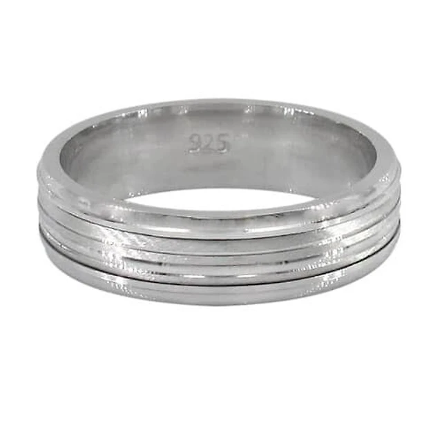 Sterling Silver With Rhodium Spin Ring, 7mm Width