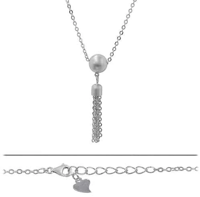 Sterling Silver With Rhodium, Tassel Charm And 10mm Ball Bead