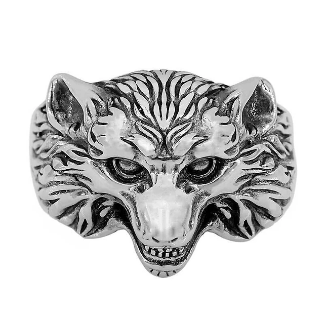 Sterling Silver, Wolf Heard Ring, 19mm Width