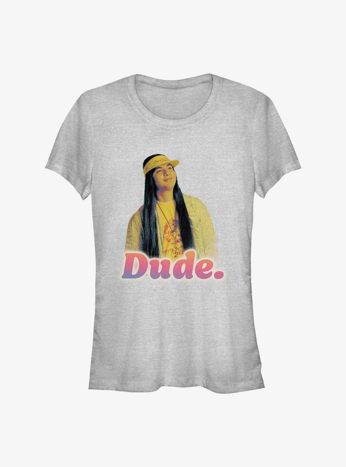 Dude. DUDE! This fitted, lightweight heathered tee -- inspired by Stranger Things 4 -- features eternally laidback Surfer Boy Pizza delivery dude, Argyle!