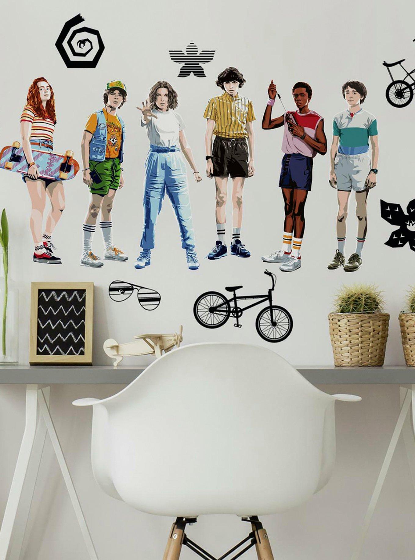 Netflix's fans of fictional town, Hawkins IN, will love to surround themselves with the main cast of the hit show Stranger Things thanks to these fun peel and stick wall decals. This officially licensed decal set features Eleven, Dustin, Lucas, Max, Mike, and Will along with a variety of iconic decal accents. Decorate walls, lockers, furniture or any flat surface. Wall decals are an easy and affordable way to decorate in minutes. Reposition or remove them effortlessly with no remaining sticky residue or damage to walls. Item cannot be shipped to P.O. Boxes