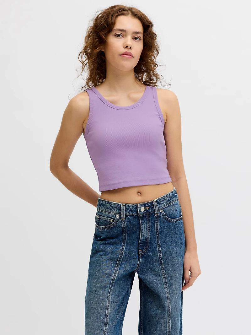 This wardrobe essential goes with basically everything. From tight jeans to loungewear, the basic top is a must-have. Rib knit has vertical ridges and is very stretchy for a comfortable feel. - Product Type : Top - Neck : U-Neck - Sleeve : Sleeveless - Length/size : Cropped - Fit : Stretch Fit - Lifestyle : Traditional