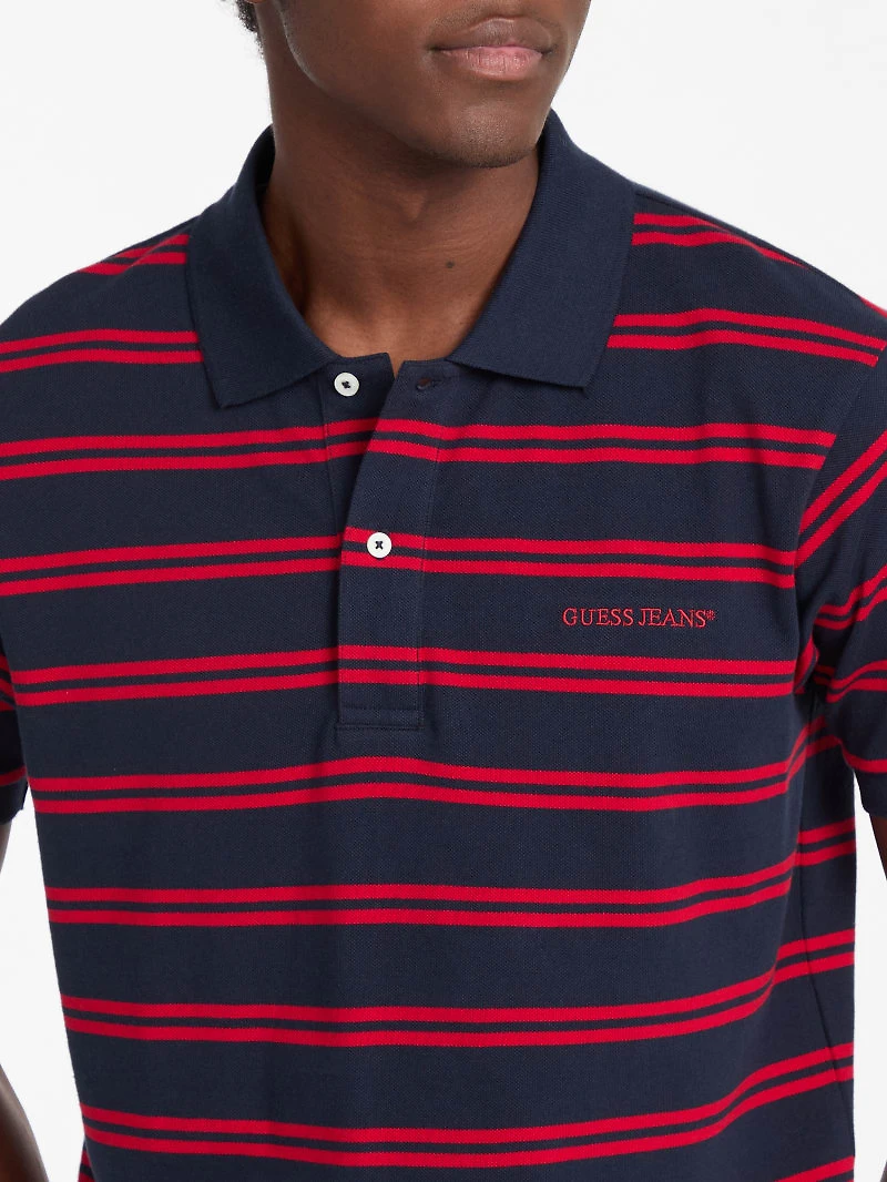 Our signature GUESS JEANS Striped pattern emblazoned over a classic polo construction. Crafted with 100% cotton.