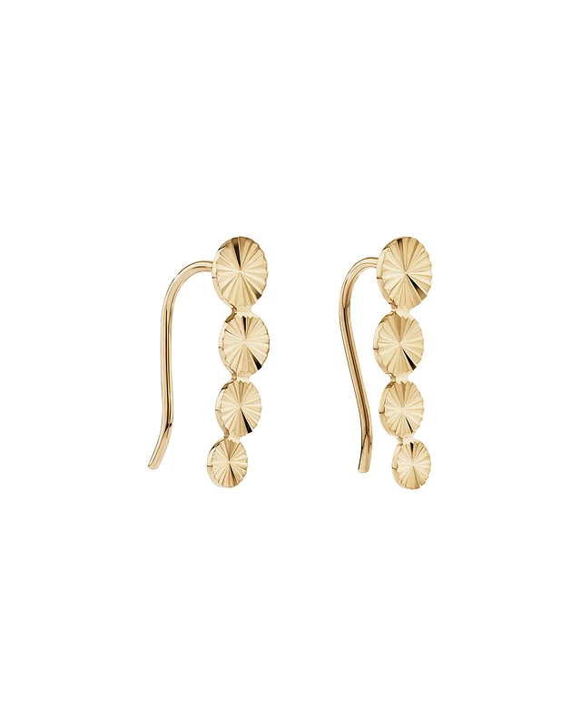 Sunray Graduated Disc Climber Earrings in 10kt Yellow Gold