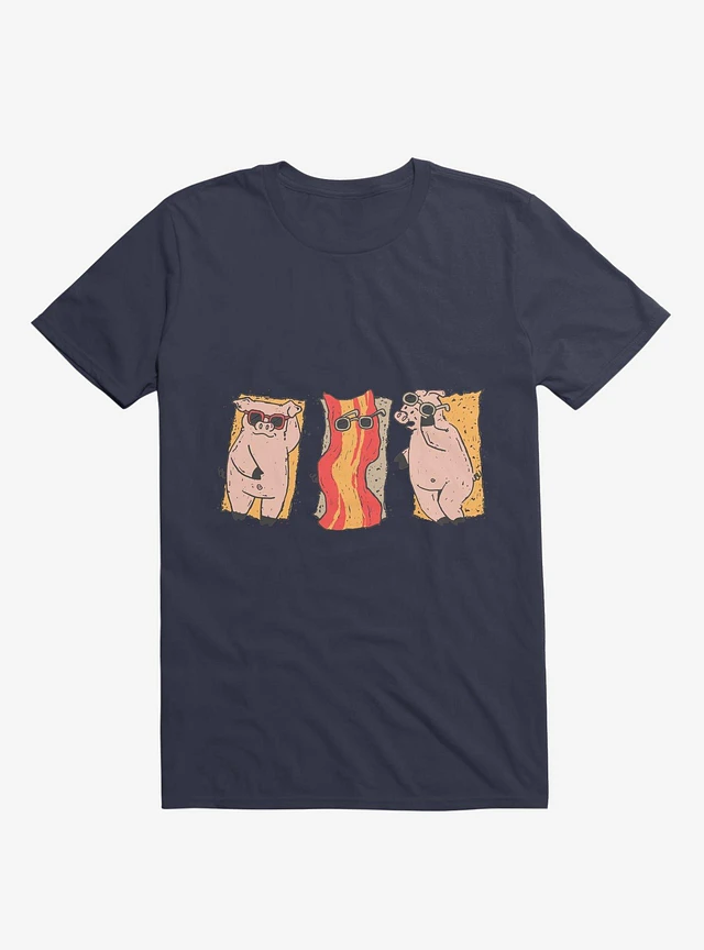 Sunscreen Pigs And Bacon Navy Blue T-Shirt