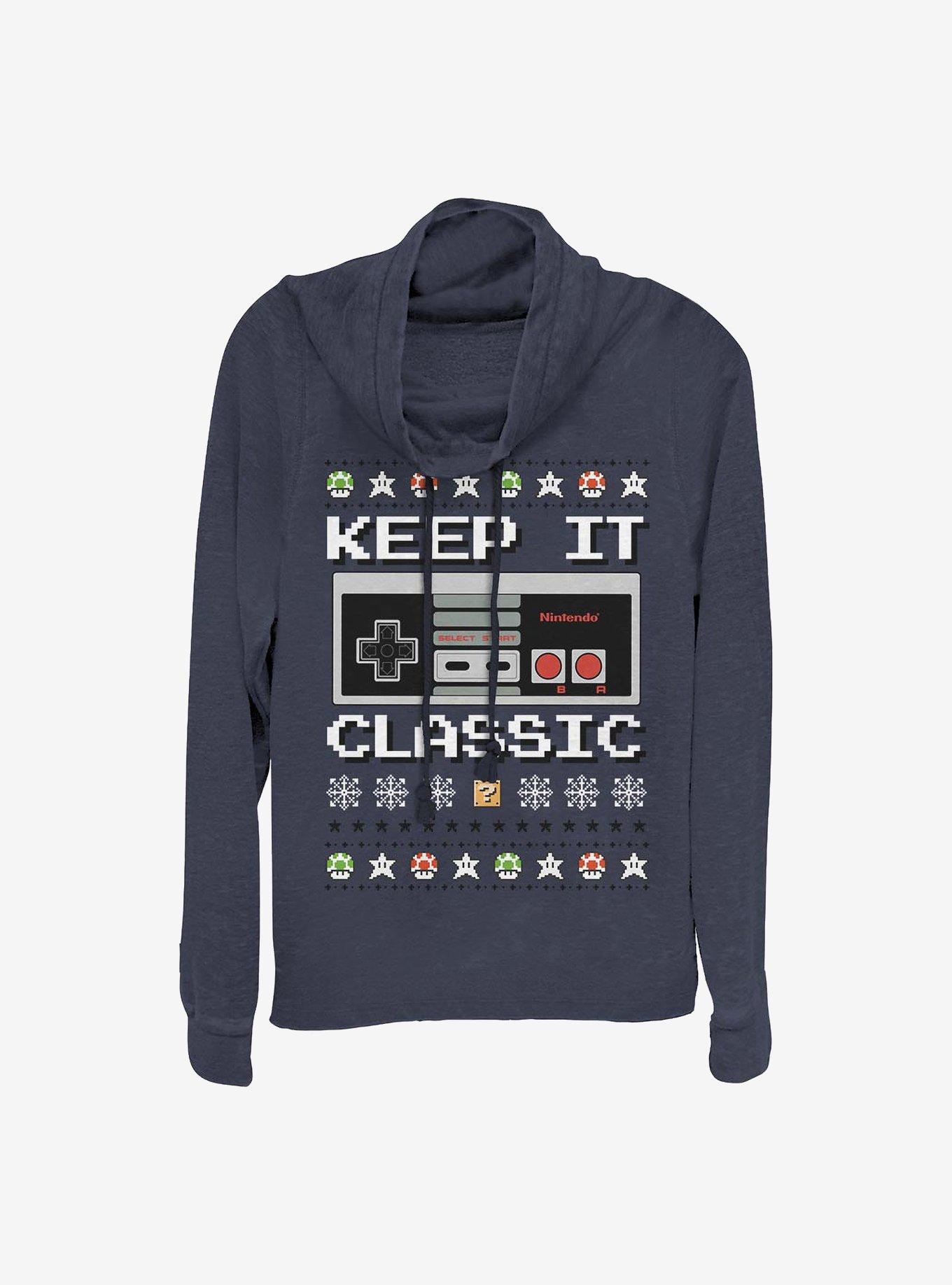 Super Mario Keep It Classic Controller Christmas Cowl Neck Long-Sleeve Girls Top