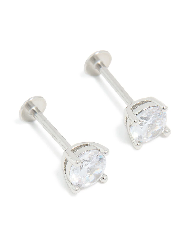 Add a touch of shimmer to your everyday look with these Surgical Steel 5mm Cubic Zirconia Flat Back Studs. These stylish earrings feature dazzling 5mm cubic zirconia crystals set in durable surgical steel, offering a sleek and modern vibe. The flat back design ensures comfort, making them perfect for lobe or cartilage piercings. Whether you're dressing up for a special occasion or adding a subtle shine to your casual outfit, these studs are versatile enough to suit any style. Pair them with a flowy dress for a polished look or wear them with jeans and a tee for effortless charm. Ideal for mixing and matching, these earrings are a must-have for anyone who loves chic, easy-to-wear jewellery. Perfect for brunch, parties, or everyday glam, they’re your go-to accessory for any outfit! Material: Cubic Zirconia, Surgical Steel Colour: Silver, Clear Dimensions: Front Design Length 5.2 mm x Front Design Width 5.2 mm Gauge: 18g / 1mm Post Length: 8 mm
