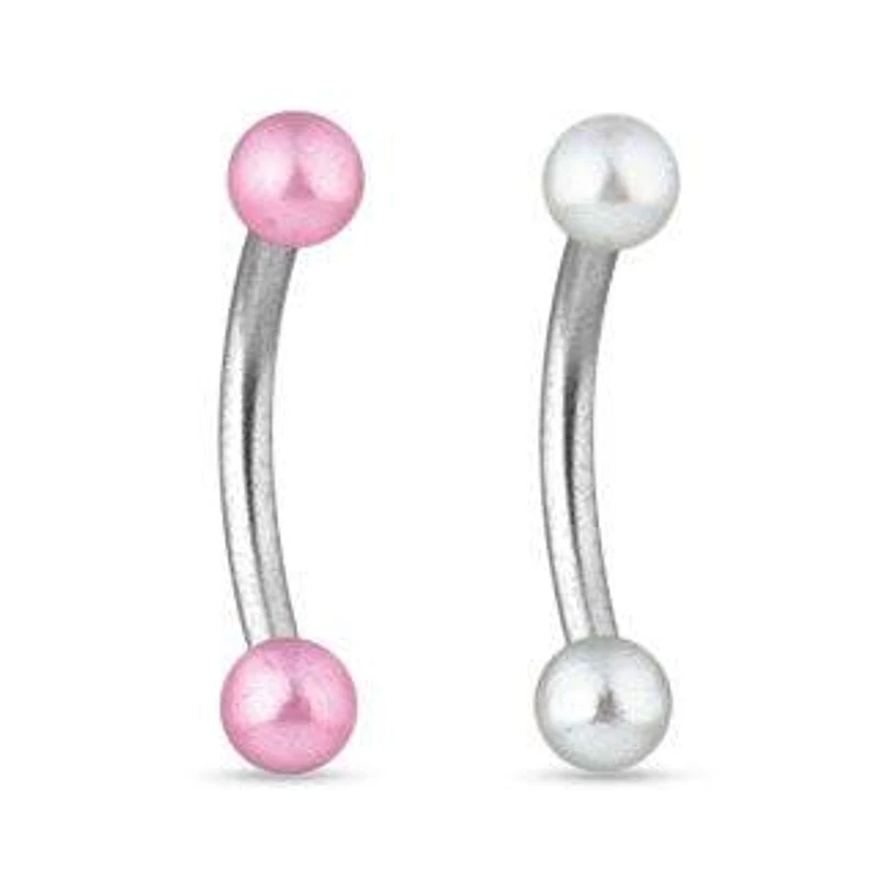 Surgical Steel Curved Barbell Ring With Pearl Acrylic Balls in Brampton, ON