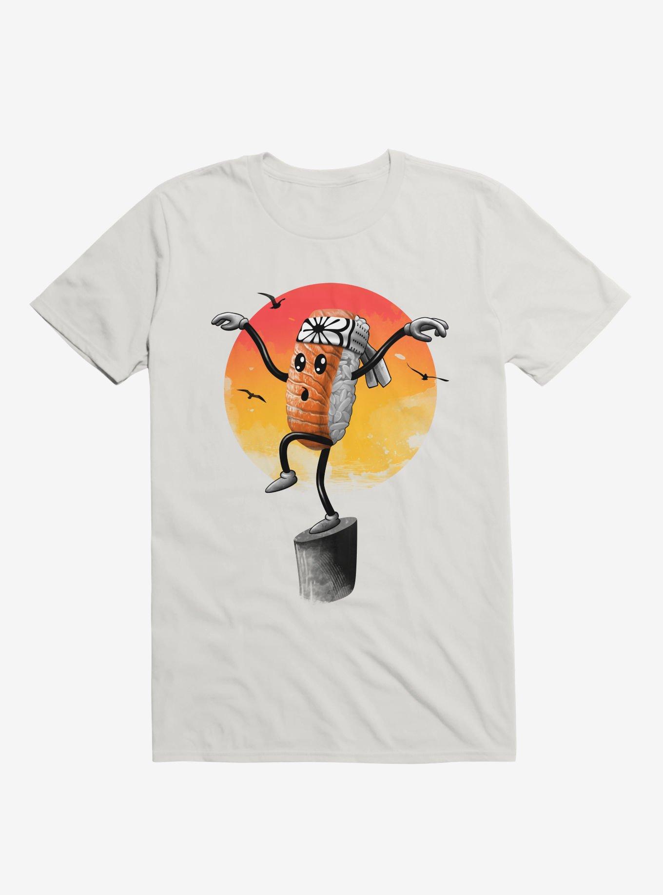 Some have mastered Shotokan and Goju-ryu -- but only one has mastered Sushi. This lightweight white graphic tee features a piece of nigiri demonstrating the sushi style of karate. Officially licensed art from Vincent Trinidad.