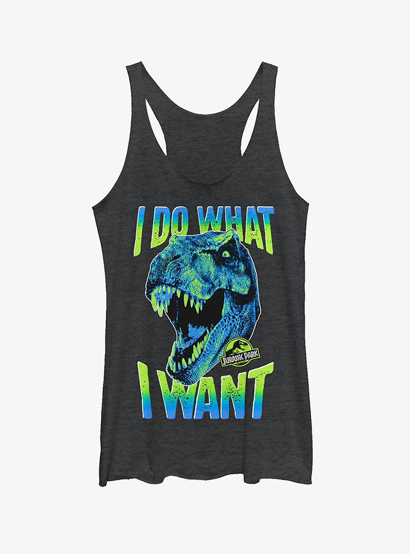 No one tells a T. Rex what to do...Channel some of that dinosass attitude with the Jurassic Park T. Rex Do What I Want T-Shirt. A cool ombre print reads "I Do What I Want" next to a Tyrannosaurus rex on this cool Jurassic World tee. Designed with raw-edge hems