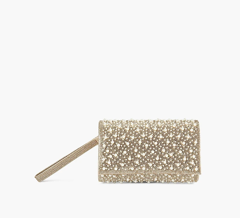 The Browns Couture Taman clutch brings refined sparkle to evening and occasion looks. Designed with an all‑over embellished surface and a structured rectangular silhouette, this piece offers elegant impact in a compact, easy‑to‑carry format, finished with a slim wrist strap.