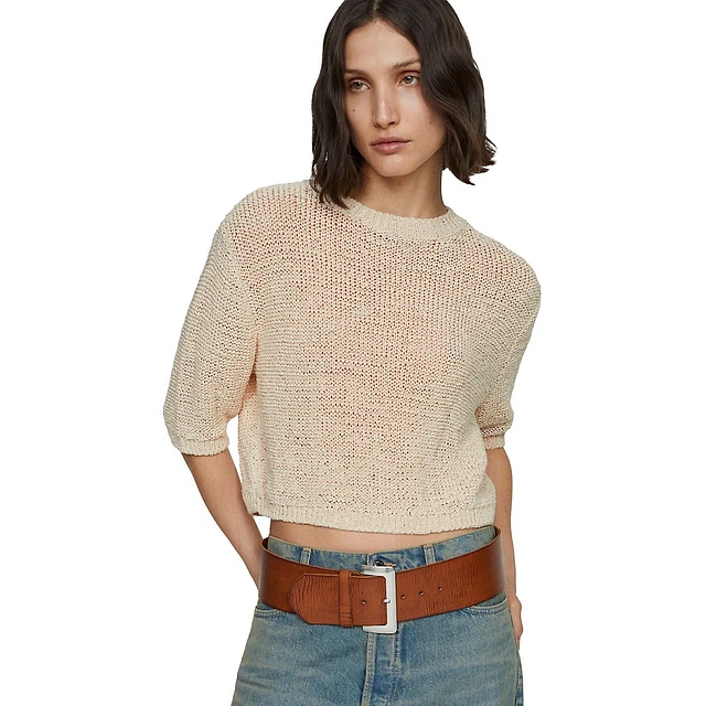 Textured Cotton Short-Sleeve Cropped Sweater