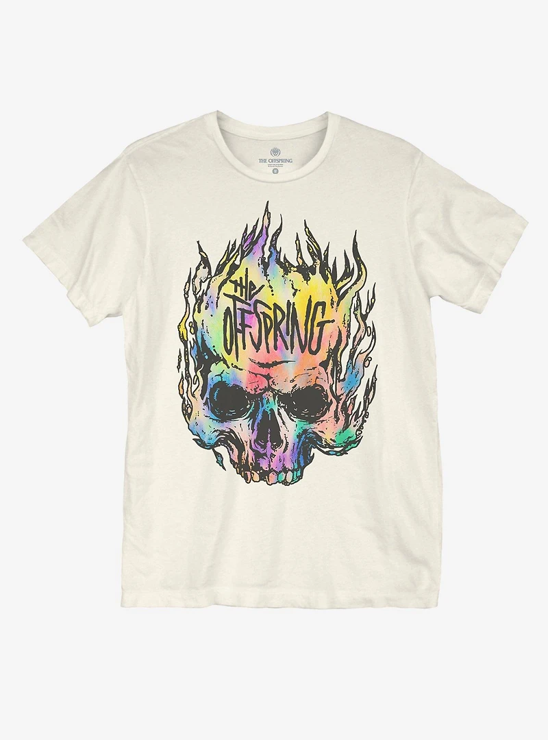 You're gonna go far, kid... especially in this The Offspring tee! Featuring their flame skull logo in a rainbow colorway. Please note: Style runs large; size down for a tighter fit.