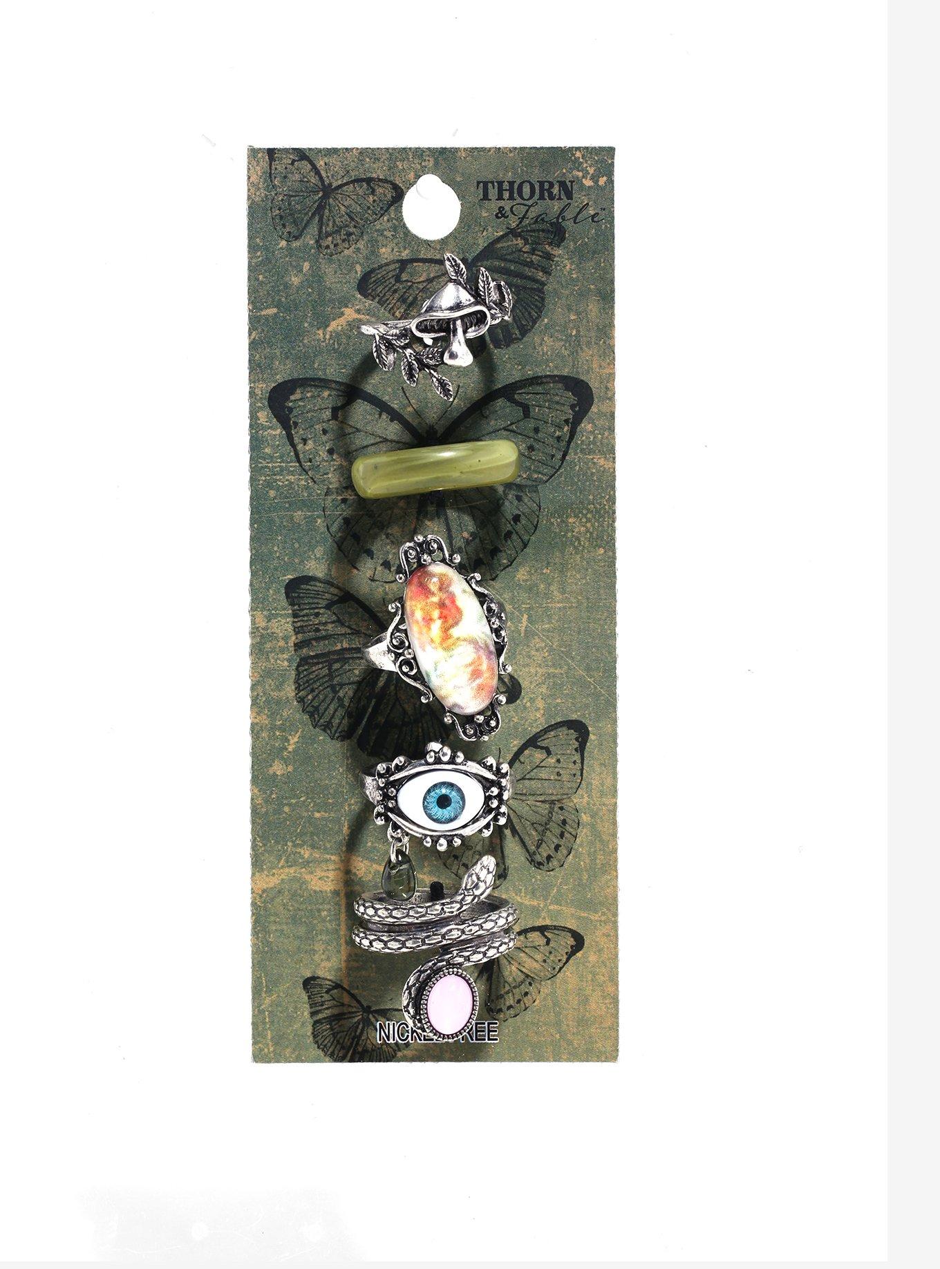 We've got an eye on this ring set! Add some mystical vibes to your look with these statement rings, featuring designs of moths, mushrooms, a realistic eye and more.