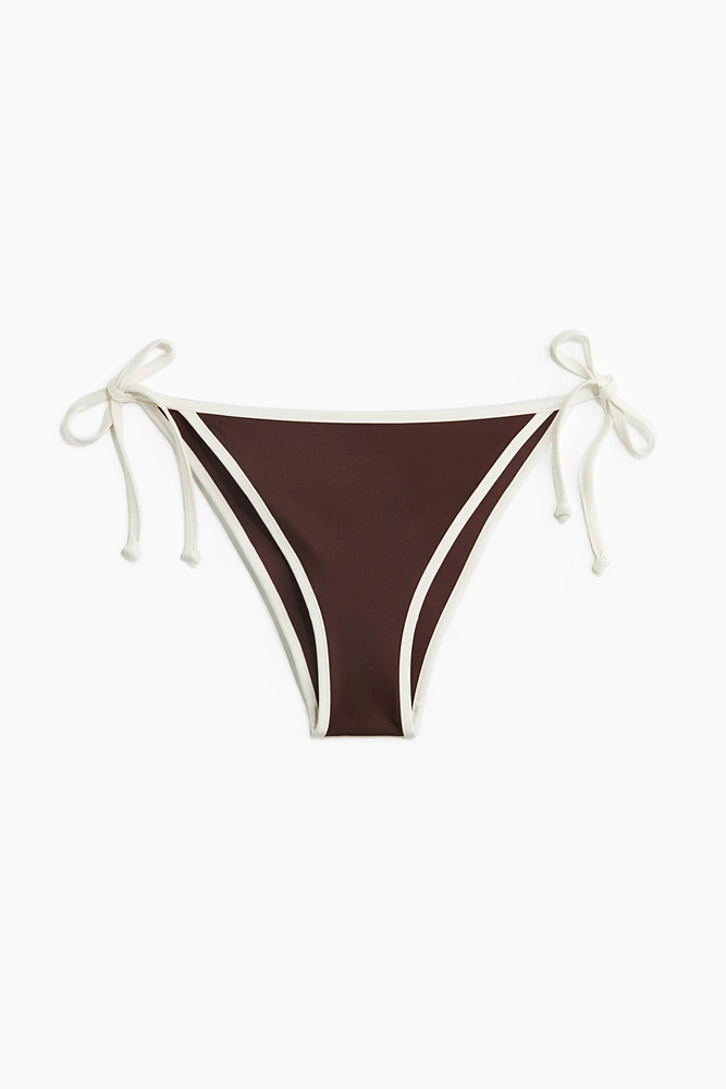 Fully lined bikini bottoms. Mid-rise waist, ties at sides, and cutaway coverage at back.