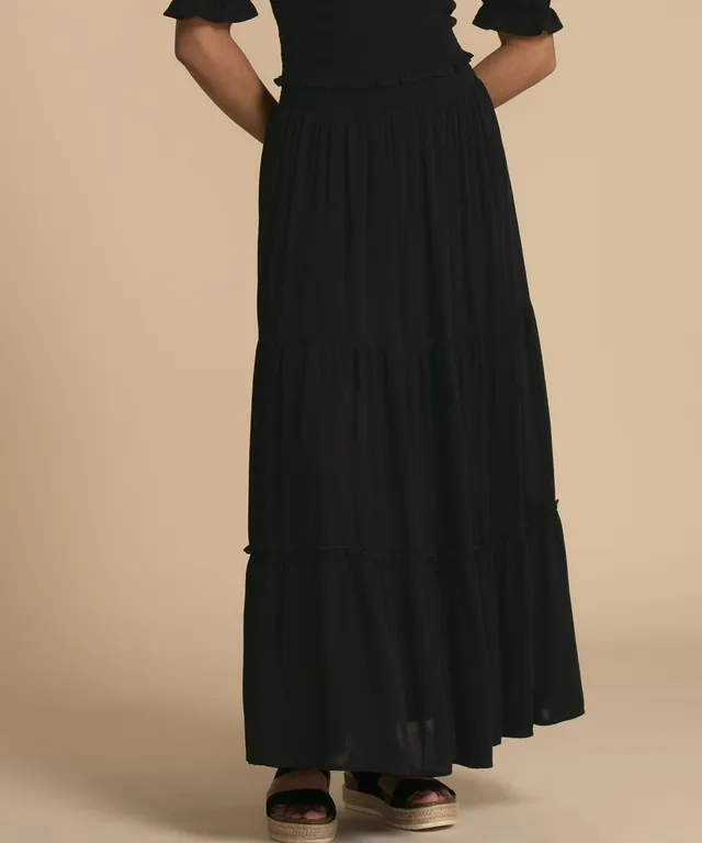 Costa Blanca Tiered Chiffon Maxi Skirt - Black