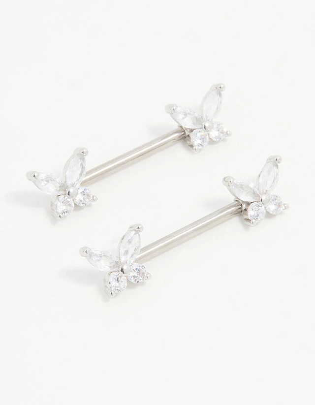 Titanium Cubic Zirconia Butterfly Nipple Bars 2-Pack