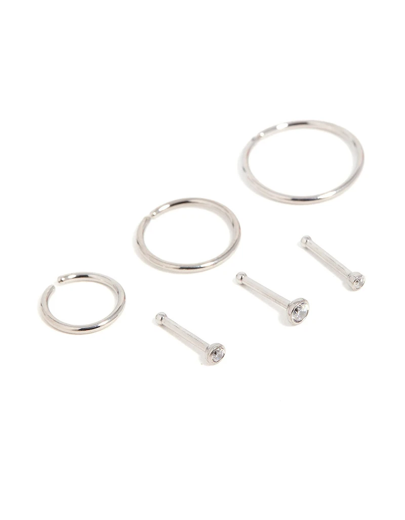Titanium Cubic Zirconia Classic Nose Studs &  Rings 6-PackTitanium Cubic Zirconia Classic Nose Studs &  Rings 6-PackTitanium Cubic Zirconia Classic Nose Studs &  Rings 6-Pack