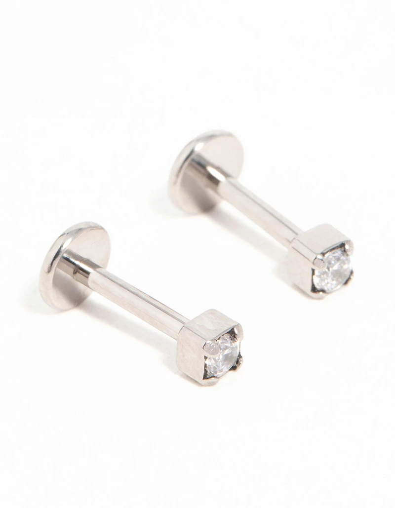 Titanium Cubic Zirconia Half Carat Flat Back Studs 2-Pack
