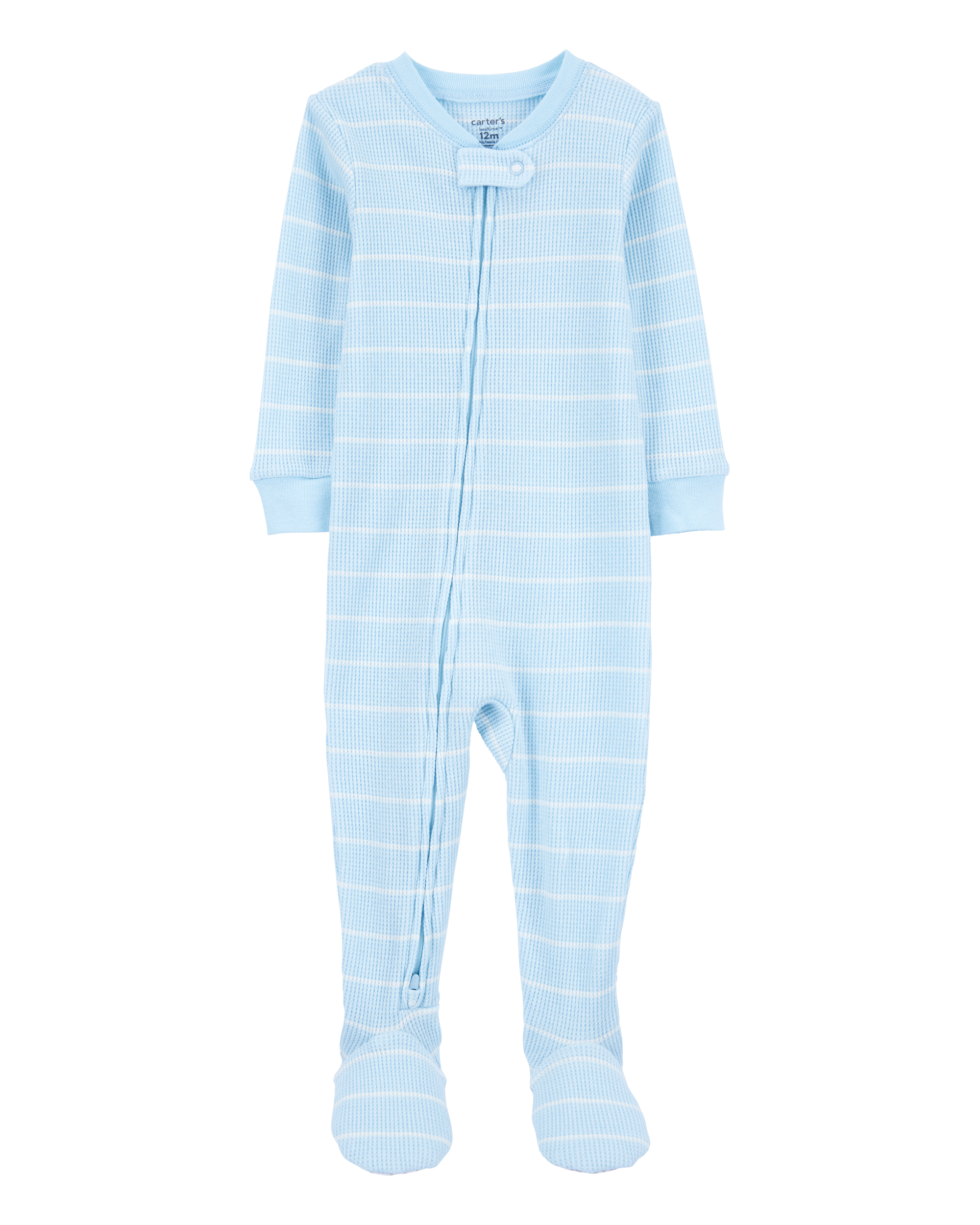 Toddler Boy Striped Waffle Knit Footie 1-Piece Pyjamas - Blue