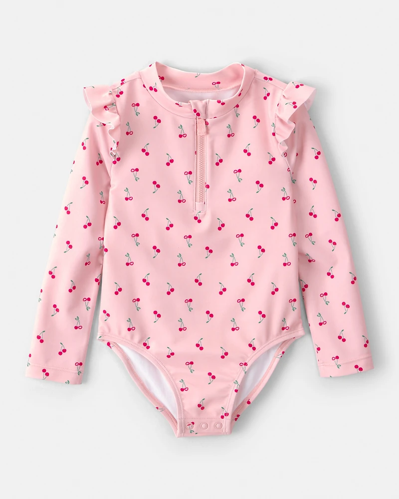Toddler Girl Cherry Long-Sleeve 1-Piece Rashguard Swimsuit - Pink