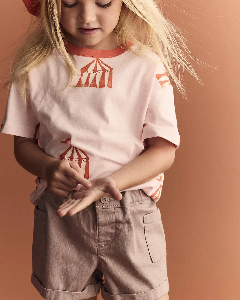 Elevate your little one's summer style with these mauve shorts. Made from soft twill, they offer all-day comfort and breathability for active playdates and sunny outings. The "F" front indicator makes dressing a breeze. Perfect for parks, picnics, or café adventures, these shorts blend functionality with trendy flair, making them a must-have for every stylish toddler's wardrobe. Toddler-friendly taglessness? No question.