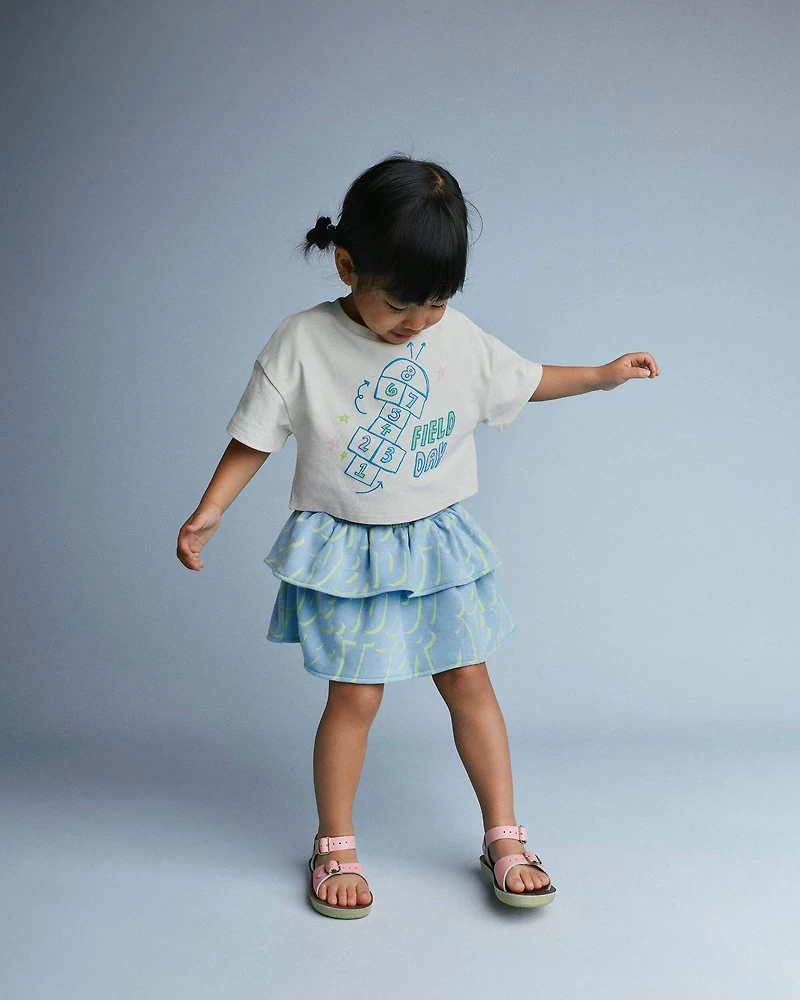 Skirt vibes, all day. This French Terry skirt is a toddler's dream. Soft fabric? Check. Perfect for park playdates or café adventures. The hidden 'F' makes finding the front a cinch. Plus, it features a novelty pocket lining—hidden surprise! Snacks and rocks not included. Toddler-friendly taglessness? No question. Comfort meets style, making every twirl a fashion moment.