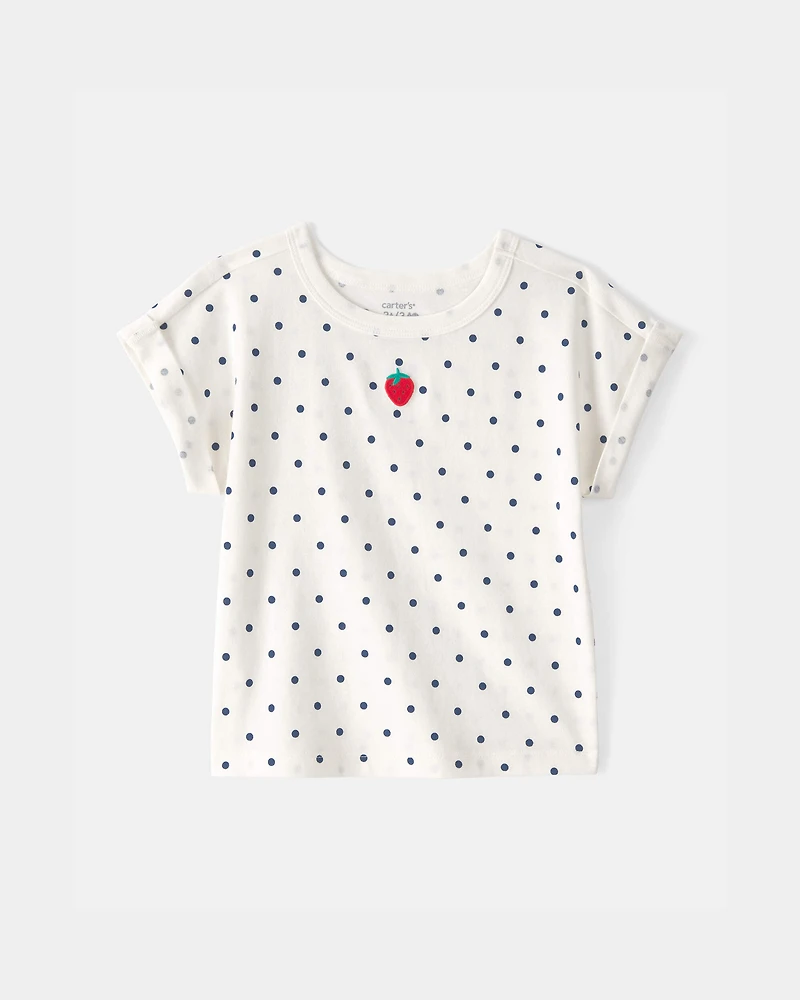 Brighten up casual days with this playful top, featuring a delightful polka dot pattern and a charming strawberry character. Designed for a relaxed fit, it allows for easy movement, making it perfect for active little ones. The soft fabric ensures all-day comfort, while the trendy design effortlessly pairs with shorts or leggings for a stylish look. Giftable and ready to delight, this top is a favourite among parents for its blend of fun and functionality, ensuring your child stands out in any season.