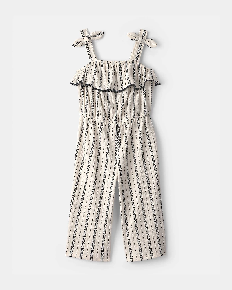 Toddler Girl Striped Ruffle Jumpsuit - CreamToddler Girl Striped Ruffle Jumpsuit - CreamToddler Girl Striped Ruffle Jumpsuit - Cream