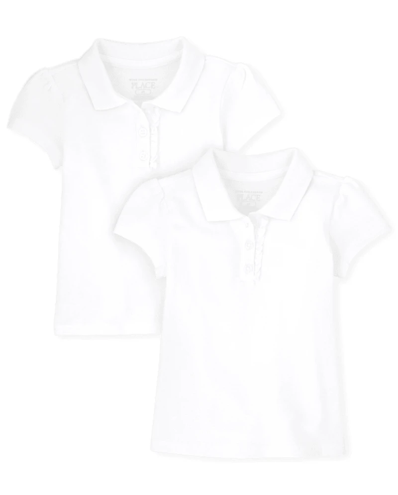 Toddler Girls Uniform Ruffle Soft Stretch Pique Polo -Pack