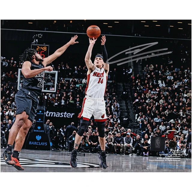 Tyler Herro Miami Heat Autographed 8" x 10" Shooting vs. Brooklyn Nets Photograph