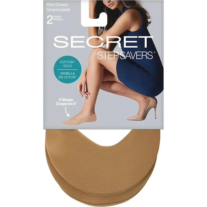 Secret® Ultra Low Cut V-Shape Footcovers offer a discreet solution for all-day comfort. This 2-pair pack features a unique V-shape design that remains hidden in low-cut footwear. Engineered with a fused edge for a seamless profile, a non-slip heel grip for a secure fit, and a soft cotton sole for enhanced breathability. Ideal for protecting shoes from moisture and preventing friction, these footcovers ensure comfort and confidence.