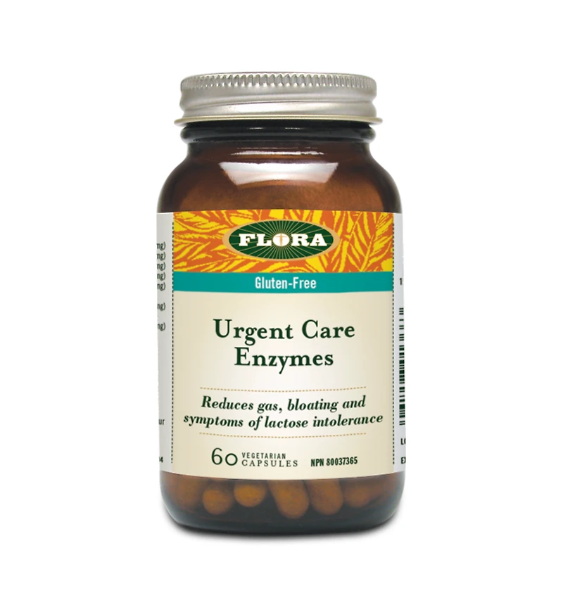Want to have your cake/cheese/bean salad/etc., and eat it too? If digestive complaints, from gas to bloating and diarrhea, are a part of your regular post-meal reality, it might be time to seek out some extra digestive support. Flora’s Urgent Care Enzyme, the most powerful enzyme blend Flora offers, is formulated for persistent digestive problems? it can help reduce flatulence following a meal rich in fermentable carbohydrates (including legumes, beans, and more) and prevent symptoms of lactose intolerance (such as gas, bloating, cramping, and diarrhea). Flora’s Urgent Care Enzyme can help you sip and savour your favourite things by bringing relief to nagging food hangovers, naturally. Adults: Take 1-2 capsules, up to 3 times daily. Take 1 capsule with the first bite of food/meal. For a heavy meal, take an additional capsule. CAUTIONS: For prolonged use, consult a health care practitioner. Consult a health care practitioner prior to use if you: 1) are pregnant or breastfeeding 2) have diabetes 3) have gastrointestinal lesions/ulcers 4) are taking anticoagulant agents/blood thinners, anti-inflammatory agents or antibiotics 5) are having surgery. Consult a health care practitioner if symptoms persist or worsen. Do not exceed 7 capsules per day. Nausea, vomiting, and diarrhea have been known to occur, in which case discontinue use and consult a health care practitioner. Headaches, heartburn, bloating and hypersensitivity/allergy have been known to occur, in which case discontinue use. Store in a cool, dry place. Keep out of reach of children.