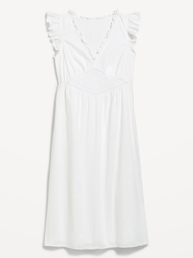 V-Neck Flutter-Sleeve Midi Dress