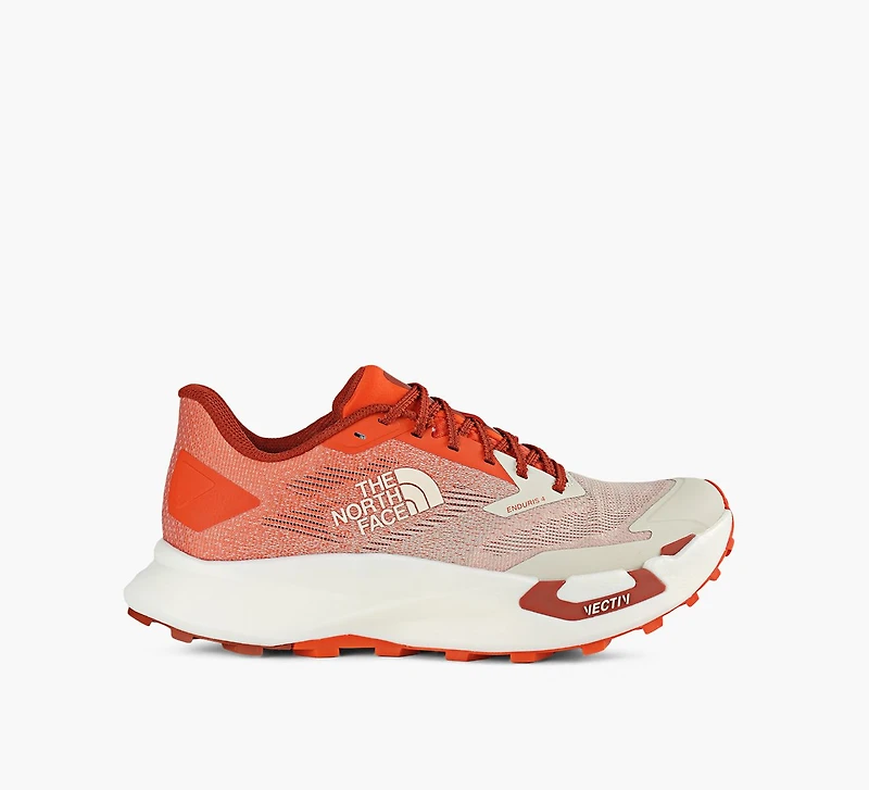 Designed for both everyday training and race day, The North Face's VECTIV™ Enduris 4 trail running shoes deliver high‑performance propulsion with long‑distance comfort. This flagship trail model features enhanced cushioning, a rockered midsole geometry and VECTIV™ 3.0 TPU plate technology to promote forward momentum and stability on uneven terrain. Finished with a lightweight, breathable upper and a durable SURFACE CTRL™ rubber outsole, they’re built to keep you moving confidently across varied trail conditions.
