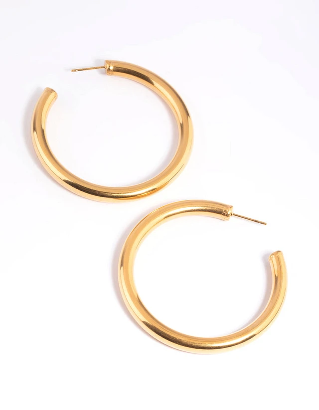 Waterproof Gold Plated Stainless Steel Large Chunky Hoop Earrings
