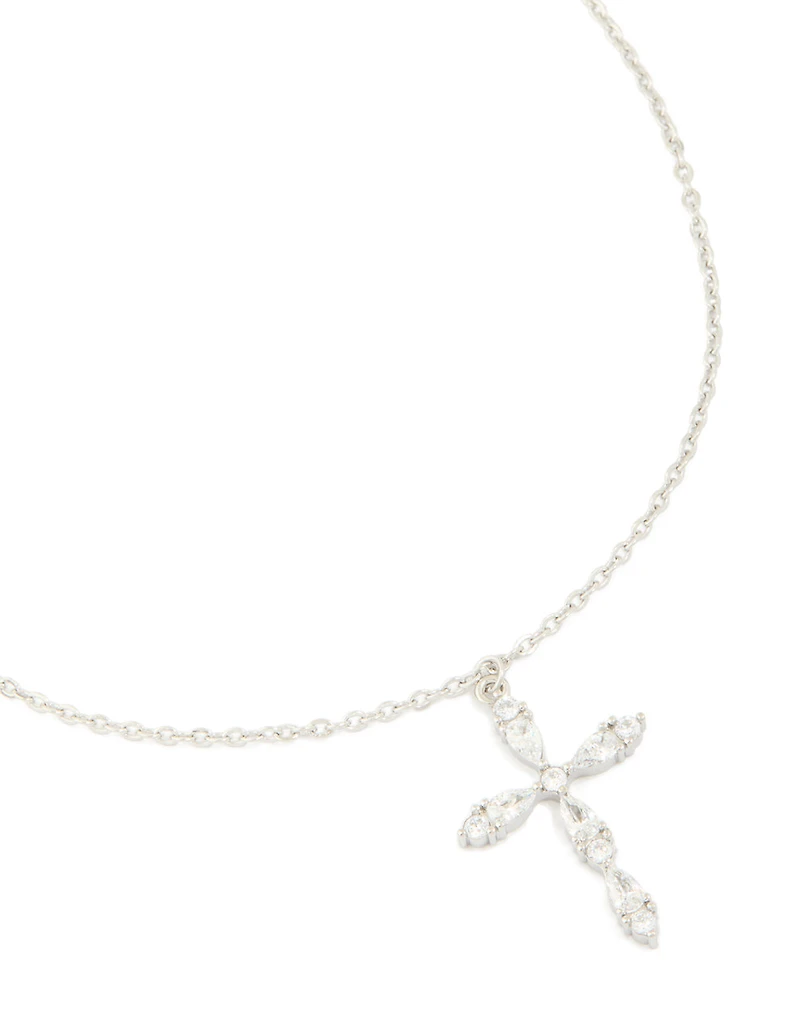 Make a bold statement with this Waterproof Stainless Steel Multi Cubic Zirconia Large Cross Necklace. This striking necklace features a large cross design adorned with dazzling cubic zirconia crystals, perfect for adding a touch of sparkle to any outfit. Crafted from high-quality stainless steel, this necklace is not only stylish but also practical—it’s sweat, swim, and shower-proof, making it ideal for everyday wear or special occasions. Whether you’re dressing up for a night out, heading to a festival, or keeping it casual with friends, this versatile necklace pairs beautifully with everything from edgy leather jackets to flowy dresses. Wear it solo for a standout look or layer it with other necklaces for a cool vibe. A must-have accessory for effortless style! Material: Cubic Zirconia, Stainless Steel Colour: Silver, Clear Dimensions: Chain Length: 45 cm Pendant Width 22 mm x Pendant Height 33 mm Extender: 8 cm Waterproof/Resistant: Waterproof pieces from this collection are crafted from stainless steel, meaning they're sweat, swim and shower proof!