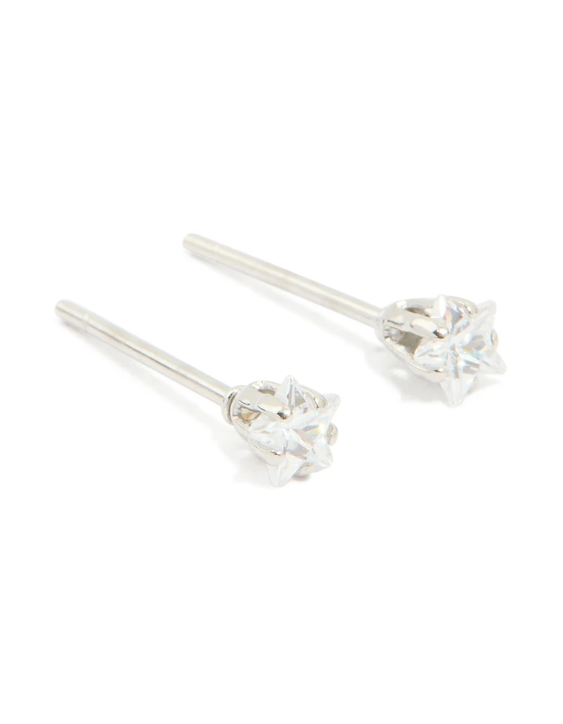Waterproof Stainless Steel Prism Cubic Zirconia Star Stud Earrings 4 MM