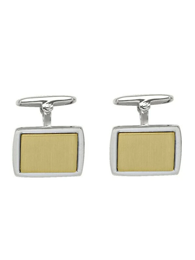 White & Yellow Gold Two Tone Fancy Rectangular Cufflinks 14KT