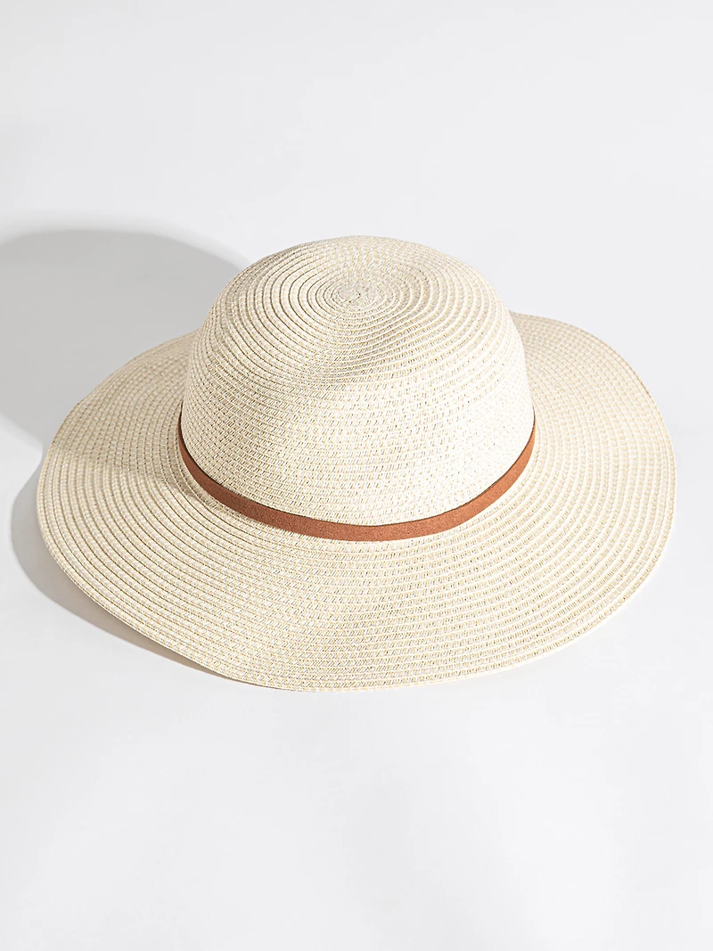 Grab your sunblock. This "straw" hat is actually made with 100% paper, making it ultra light and breathable for those lounging-on-the-beach days. The faux suede hatband gives it a bit of flair.