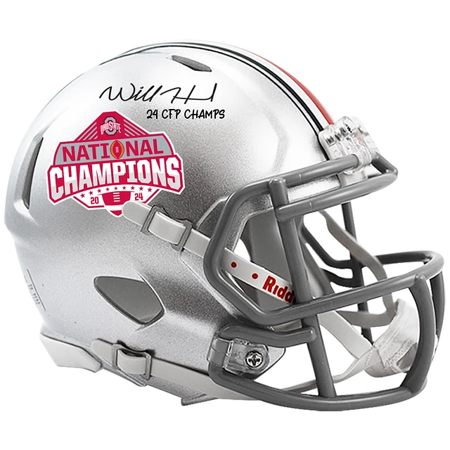 Will Howard Ohio State Buckeyes Autographed 2024 College Football Playoff National Champions Logo Riddell Speed Mini Helmet with "24 CFP Champs" Inscription